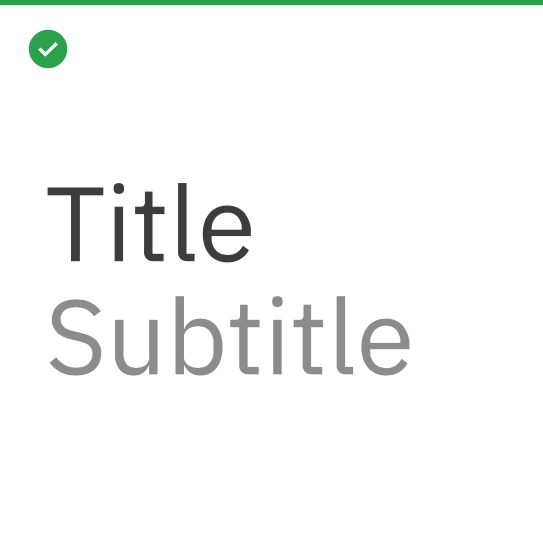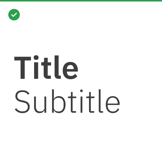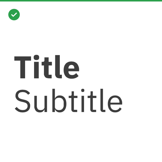Examples of how to differentiate titles and subtitles by weight or contrast change are shown here. It’s important to keep it simple and not create titles that are too long.