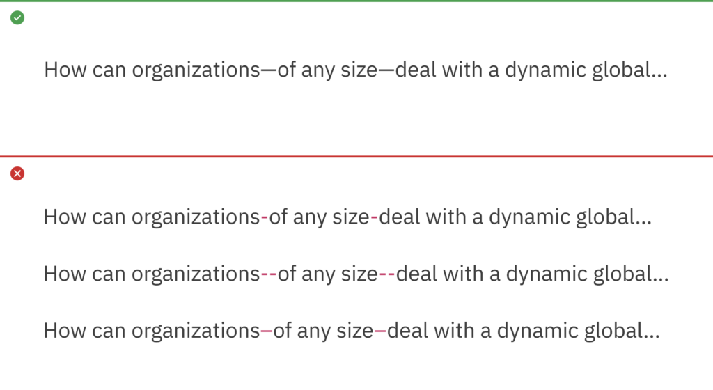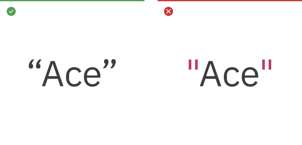 Use left and right “curly quotes” when quote marks are required. They are design sensitive, intended to match or blend within Plex. Avoid using “straight” quotes. These are a relic from the typewriter days, and a common error in modern typography.